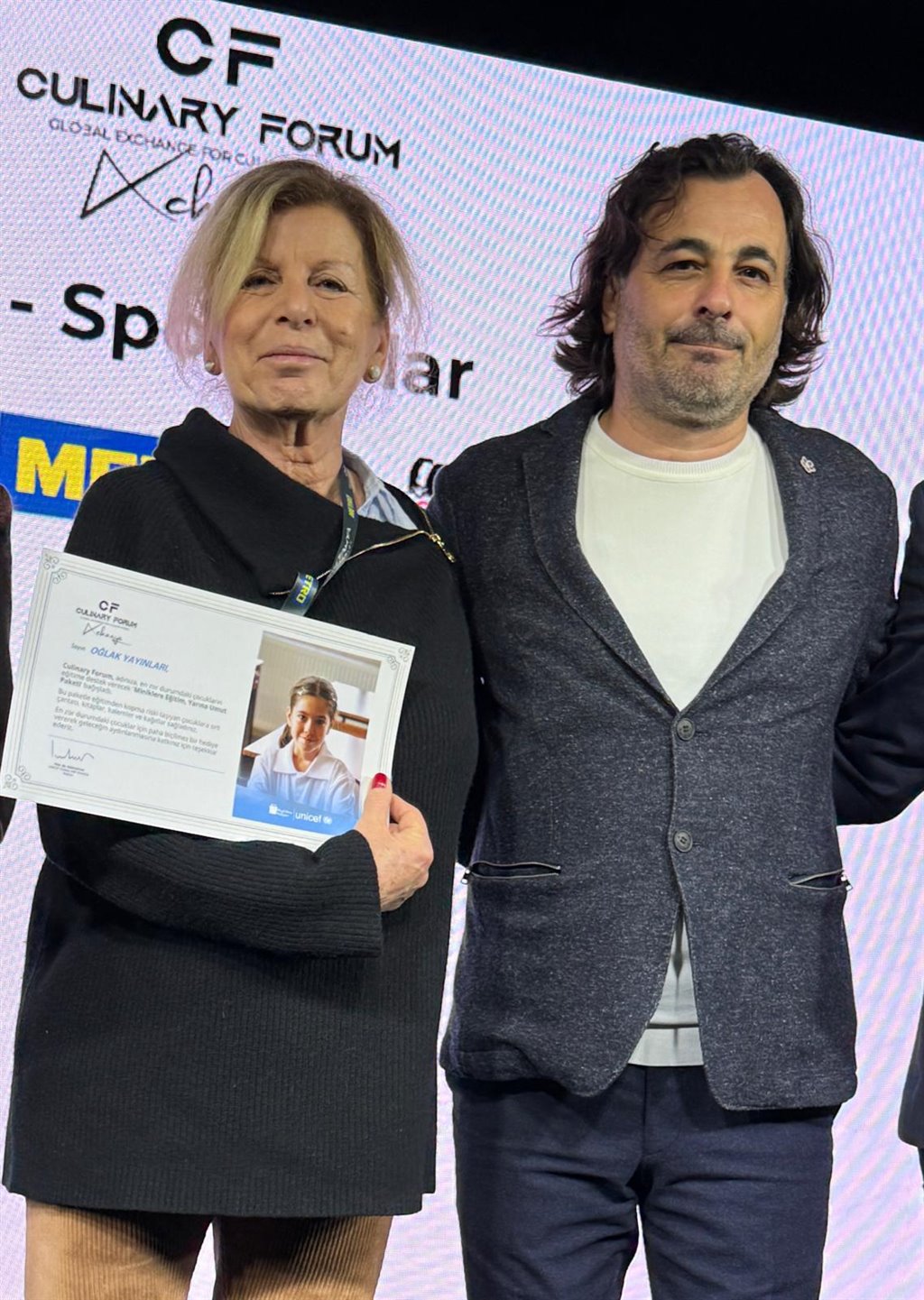 Culinary Forum'un, Oğlak Yayınları adına UNICEF’e yaptığı “Miniklere Eğitim, Yarına Umut Paketi” belgesi.